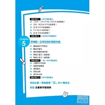 本書文法整理得非常好,難以分辨的文法都詳細列表舉例,就連韓國人都不見得回答得出來的分別,也解釋得非常詳細,讓人一讀就懂!──pey