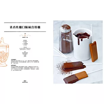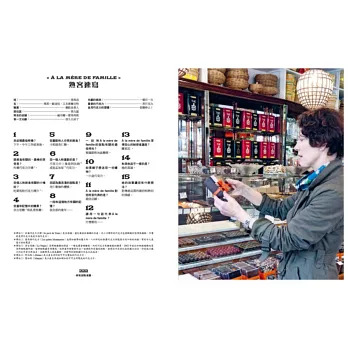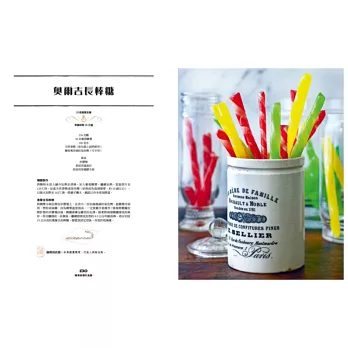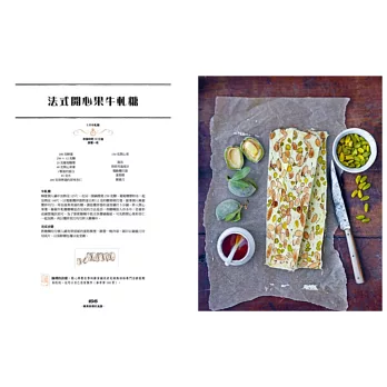 首度公開超過100道經典食譜,新手和高手都能輕鬆在家烤出最道地的法式精緻甜點。包括傳統人氣點心:費南雪、瑪德蓮;巧克力師傅自製礁岩巧克力、松露巧克力;大受法國人追捧的糖果:小熊棉花糖、巧克力乳香焦糖;和espresso搭配令人驚豔的卡莉頌杏仁糖、法式草莓軟糖;法式早餐不可或缺的香草焦糖抹醬、榛果抹醬、烈日糖漿;以及每一口都是樂趣的布列塔尼奶油酥餅、馬卡龍、巧奶奶蛋白糖霜等。