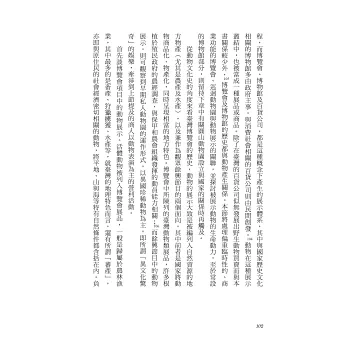 書中著眼臺灣歷史最悠久、規模最龐大的臺北圓山動物園,集中探討動物園在面對民間、國家、戰爭與環境變遷之際,呈現哪些不同的面貌;在不同的歷史階段,又是如何被凝視、想像與操作。本書不僅是臺灣首部動物文化史,更是一部宏觀的自然史與生命史,透過爬梳動物與人類社會相遇的過程,進一步思考人與自然的和諧共處之道。
