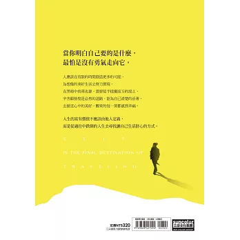 一本寫給正為愛情、工作、親情、夢想、人生所煩惱的人,沒必要將自己侷限在一個小地方,跨出的那一步,你會自然地敞開心扉打開心界,而旅程上的回饋就是一把神祕鑰匙,它會解開你人生的困境跟疑惑。
