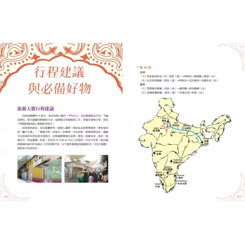 印度的每個邦、每個城市都各有風情,南邊能感受到度假的味道,慵懶地散步、喝著香料奶茶發呆;北邊則是探索奢華絢麗的皇宮、豐碩的遺跡、讚嘆古老建築。行走印度,就像品嘗多種咖哩和香料組成的豐盛佳餚,時而辛辣刺激卻又濃郁迷人,令人回味。