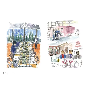 Peggy用畫筆描繪義大利酒莊的風土人文、威士忌和葡萄酒的釀酒方式,