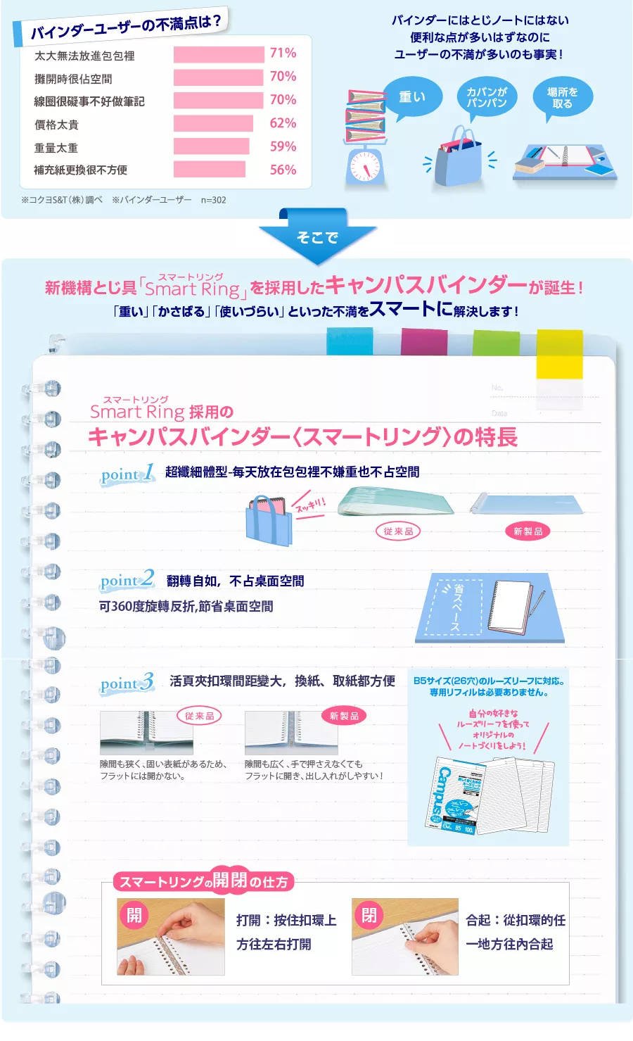 KOKUYO Campus 超薄360度活頁夾筆記本(26孔)(可收納60張)-B5透明