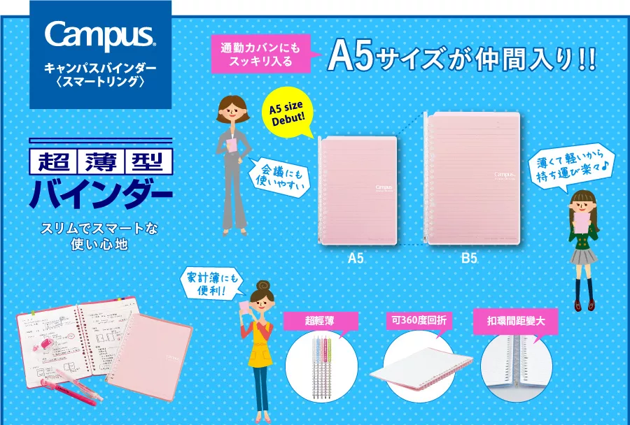 KOKUYO Campus 薄型2孔活頁夾A7-粉