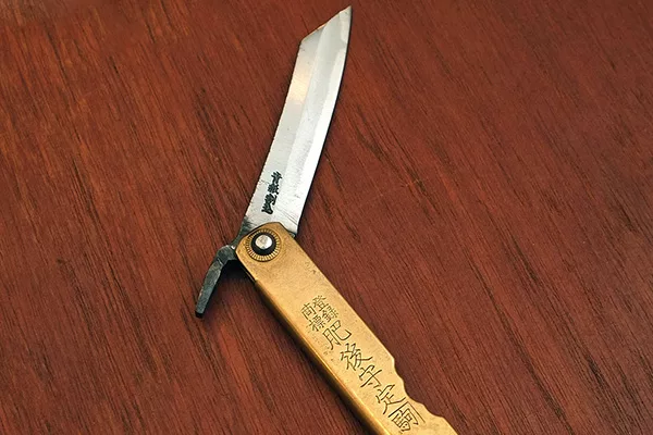 最後,由於肥後守的結構不似西洋刀具擁有鎖定裝置,而它的轉軸也會隨著使用時間而逐漸變鬆(可藉由槌打轉軸再次讓它變緊),這是肥後守的特色,若無法接受則請勿選購。