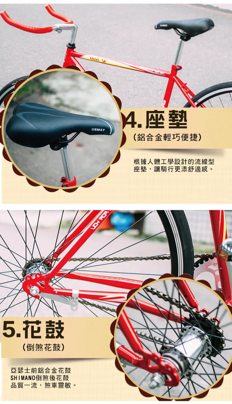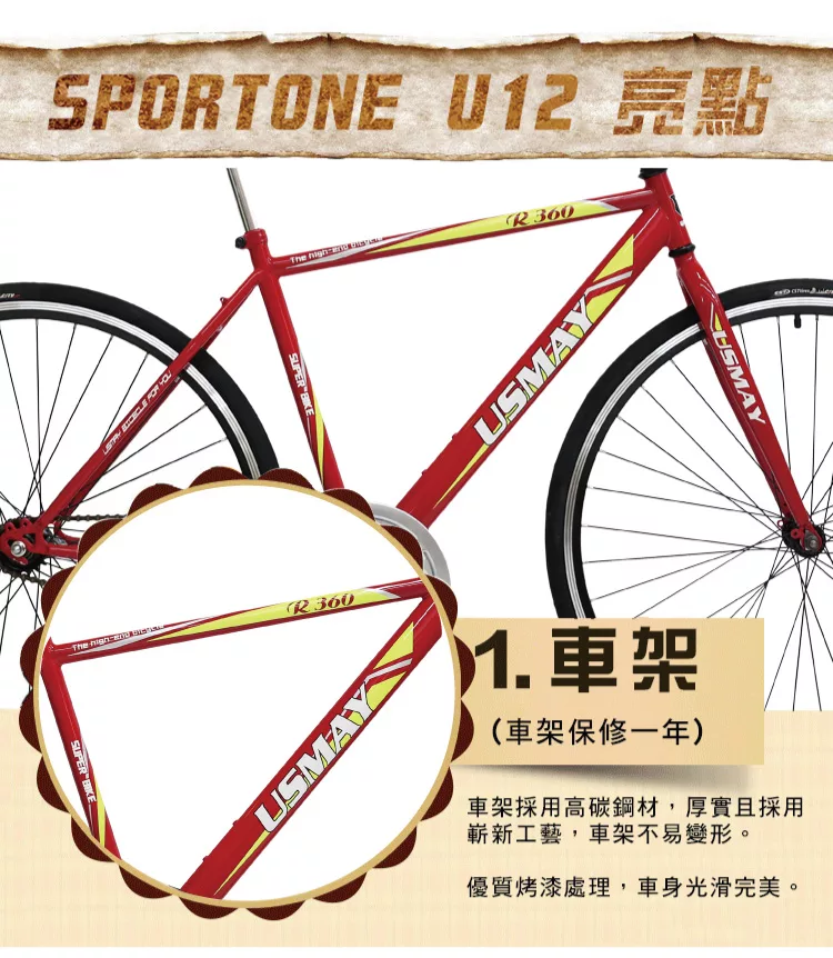 SPORTONE U12 SHIMANO倒煞車牛角把單速車 美式27吋經典休閒自行車(簡單好騎到難以想像)-紅