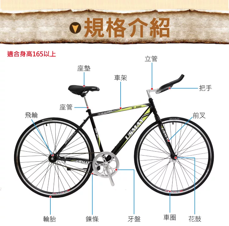 SPORTONE U12 SHIMANO倒煞車牛角把單速車 美式27吋經典休閒自行車(簡單好騎到難以想像)- 白色
