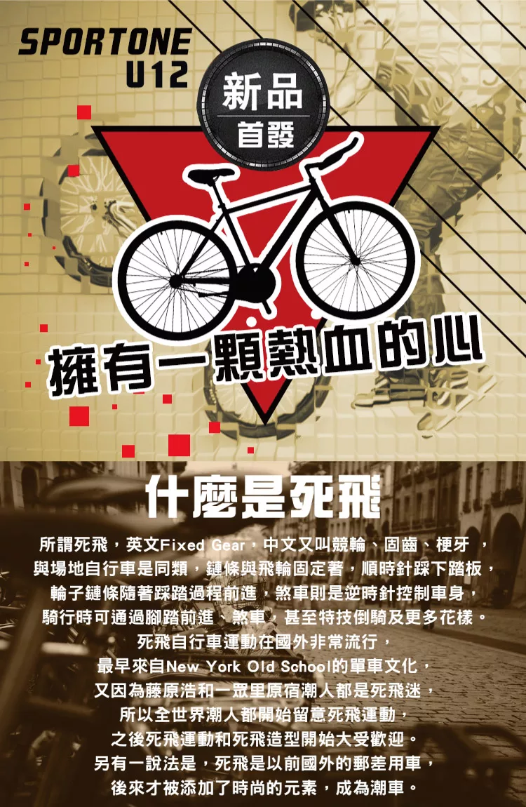 SPORTONE U12 SHIMANO倒煞車牛角把單速車 美式27吋經典休閒自行車(簡單好騎到難以想像)- 黑紅