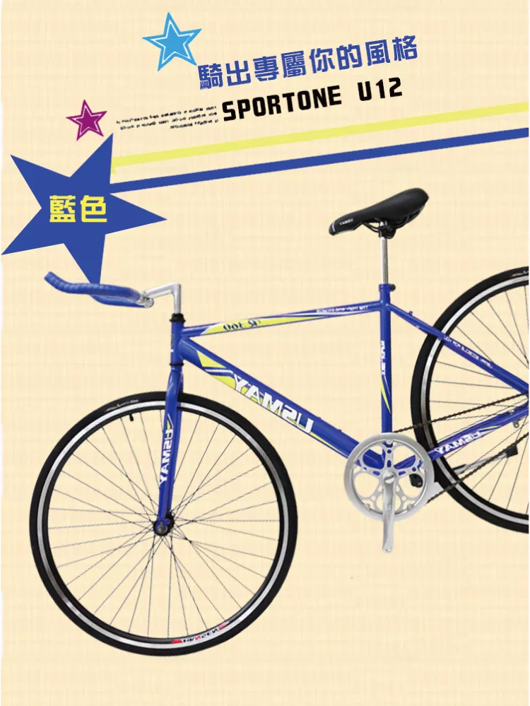 SPORTONE U12 SHIMANO倒煞車牛角把單速車 美式27吋經典休閒自行車(簡單好騎到難以想像)- 藍黃
