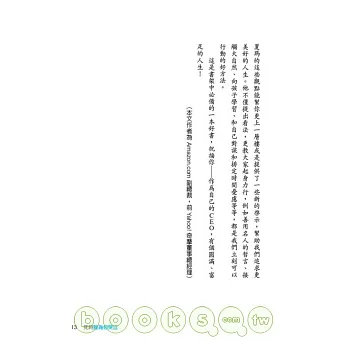 力行開卷有益的夏瑪鼓勵大家不要輕忽學習這件事,如果你有子女,就一定要當個好爸媽(第 66 條),千萬不能一廂情願希望自己的教養方式沒有錯,必須積極一點來增進教養能力,多讀幾本教養書或去上課聆聽專業意見,這是省不得的功夫。現在夏瑪以演說為業,但他坦承自己原本也怕死了要上台講話,既然很怕又避不掉,不如先去作好準備,他建議每個人要像他一樣:去修公開演講的課程(第 87 條)。