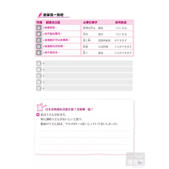在每篇日記的例句中,所使用的「日本語表現」都有其文法表達及句型說明,所以在日語表達上可更清楚了解其不同點與使用方法。每個句型都會搭配例句示範及造句練習,讓讀者能快速熟悉、即學即用,學習效果加倍,輕鬆就能自己寫出小日記。