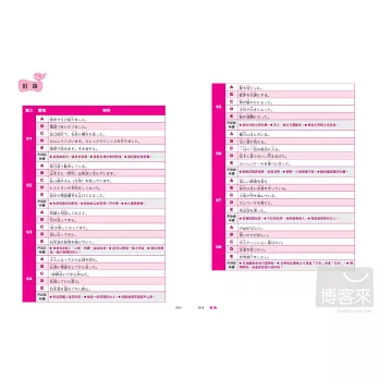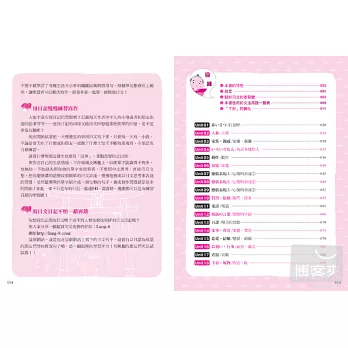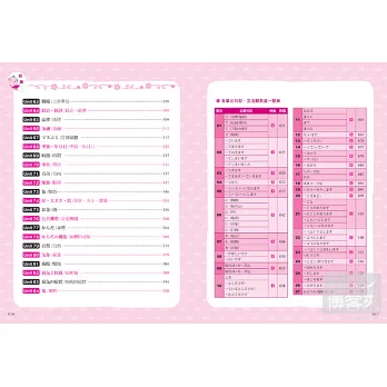本書目錄特別設計雙目錄,除了可以從情境主題查找,也可以從文法級數或使用句型來查找讀者所需要的頁面。