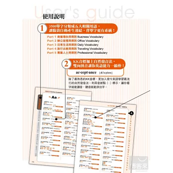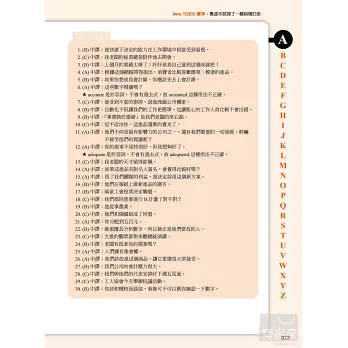 只要跟著序號標示,把單字其他同義的親朋好友一次找出來,即刻將他們的底細全都摸得一清二楚,利用交叉對照一次就能學到好幾個單字用法,再也不必再害怕好多的同義字當中要選擇哪一個才是最正確的!