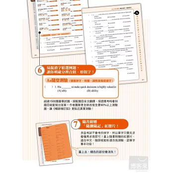 第6力 每個A~Z單字後面都附有易混淆字精選例題,讓你明確分辨音似、形似字。90%以上例題經過作者團隊重新改寫,更貼近真實考題!