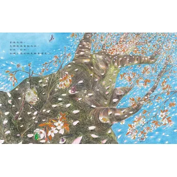●近藤薰美子延續以往豐富的畫風與細膩的筆觸,搭配簡短的文字和趣味的對話,透過櫻花的花開花落以及與萬物中花蟲鳥樹彼此的邂逅和互動,具體而微地傳達出大自然無時無刻展現的新鮮生機。