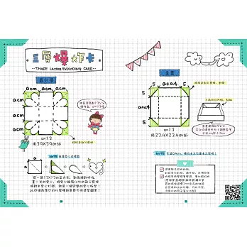 跟著雅菲的圖解步驟,看著雅菲清楚的文字解釋,一步一腳印,你一定能做出心目中的爆炸卡和創意機關卡的!貼心的雅菲還將每個教學錄製成教學影片,只要掃描QRcode就能看到雅菲的動態教學了!