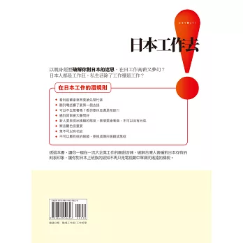 透過本書,讓你一窺在一流大企業工作的酸甜苦辣,破解台灣人普遍對日本存有的刻板印象,讓你對日本上班族的認知不再只是電視劇中單調而遙遠的樣貌。