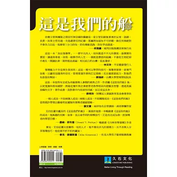 「艾伯拉蕭夫艦長的《這是我們的船》,奠基於他第一本暢銷書《這是你的船》的成功,他風趣的見解、故事,及以身作則的領導技巧,正是有志成為第一流領導者的學習目標。」——唐納.菲利普(Donald T. Phillips),暢銷書《向林肯學領導》(Lincoln on Leadership)作者