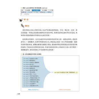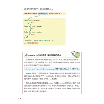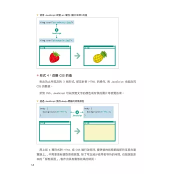在 JavaScript 的學習安排上,本書先透過各種【實務範例的實作】讓您感受到 JavaScript 的效果,並精心設計大量【示意圖】為您解說變數、運算子、流程控制、函數、DOM 操作等基礎知識。而針對範例中的語法,本書將【程式碼拆解至每一行為您細細解說】,讓您絕對看得懂!