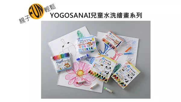 YOGOSANAI系列的可水洗蠟筆,有12色與16色,可以讓孩子恣意的繪畫,