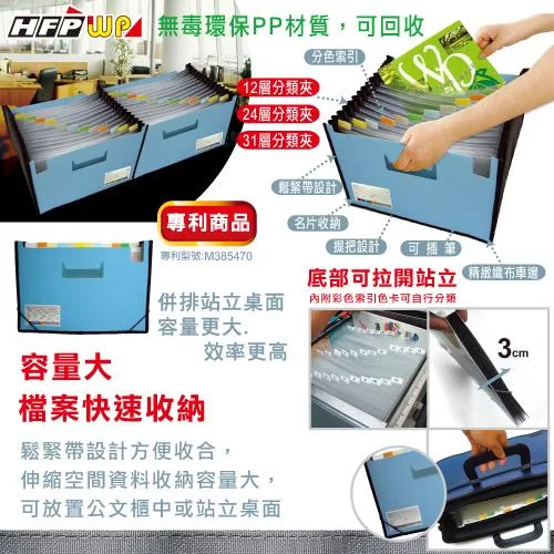 珠友 A4/13K站立式風琴夾/多層文件夾/分類夾/文件盒/伸縮文件夾/辦公室文件收納/檔案收納-12層 02藍