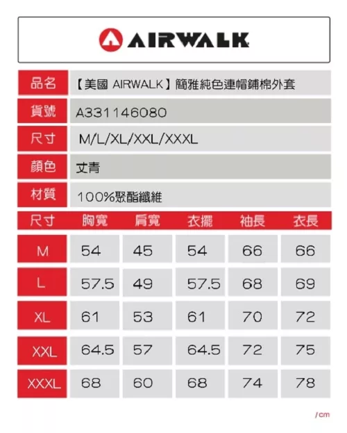 【美國 AIRWALK】簡雅純色連帽鋪棉外套-男XL丈青-XL