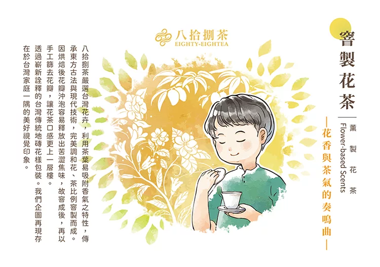2.八拾捌茶窨製花茶均未添加香精、香料,故每次沖泡花香會逐漸下降,茶氣則會越加明顯,此為正常現象。