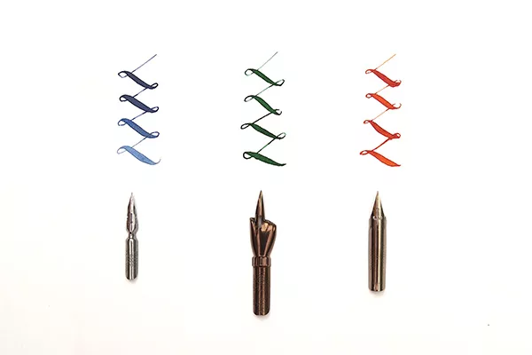 沾水筆尖可大致上分為三類,分別是細尖(Pointed nib)、平尖(Broad nib)與特殊尖,每種類型筆尖分別可寫不同字型-細尖可寫斯賓賽體、銅版體、花體、英國圓體等,平尖可寫哥德體、斜體、羅馬圓體、安瑟爾體等,特殊尖則可用來繪製飾線等用途,因此在購買筆尖之前需要先了解自己想寫什麼字體,接著再針對每個類別的裡的筆尖做選擇。