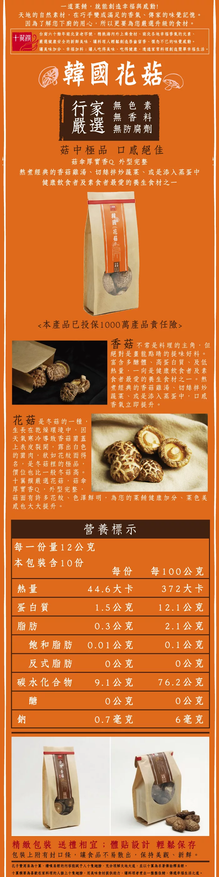 十翼饌 上等韓國花菇(120g)