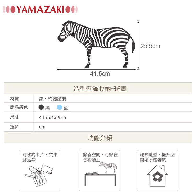 【YAMAZAKI】造型壁飾收納-斑馬(黑)*日本原裝進口*雜物收納/臥室/客廳/萬用收納