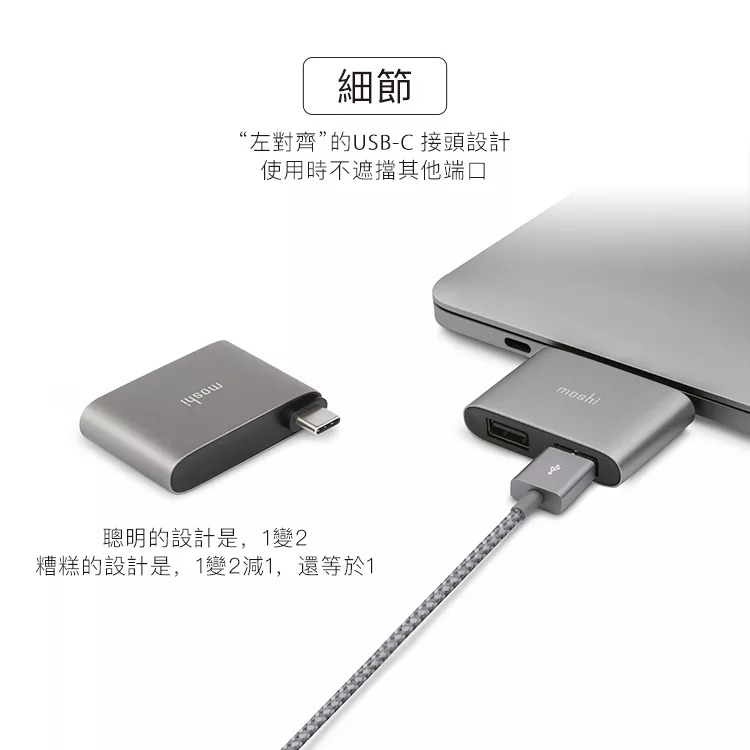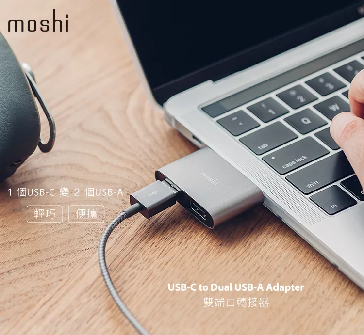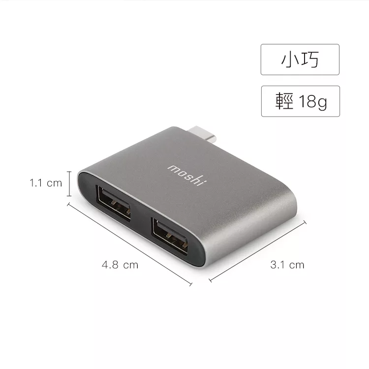 Moshi USB-C to USB-A 雙端口轉接器鈦灰