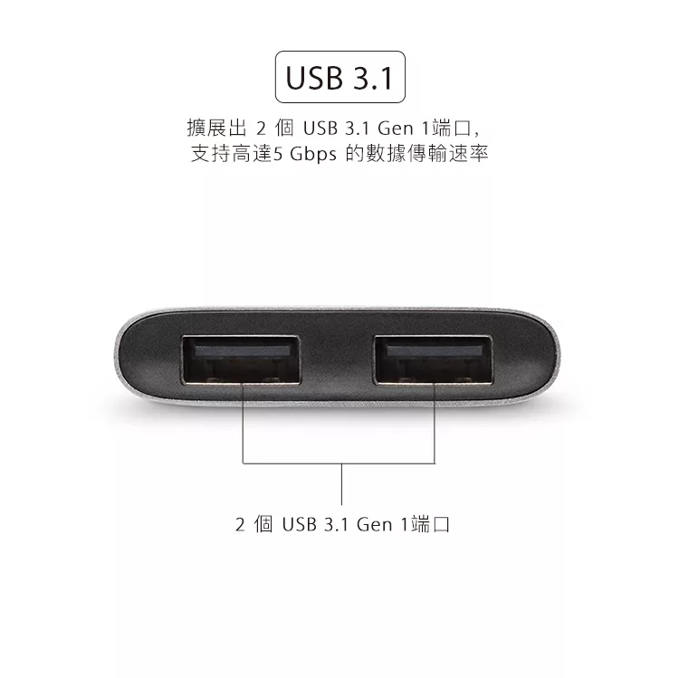 ■ 兩個 USB 3.1 Gen 1 端口,皆支援資料傳輸,傳輸率可達5 Gbps