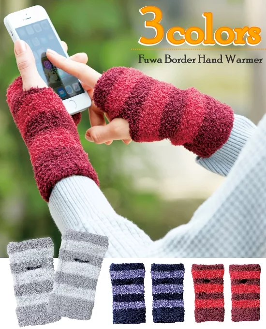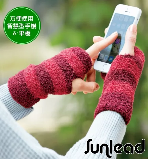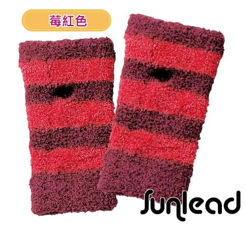 Sunlead 保暖防寒條紋配色蓬鬆感露指手套(莓紅色)