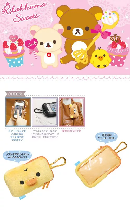 San-X 懶熊數位配件系列吊掛毛絨手機套。小雞