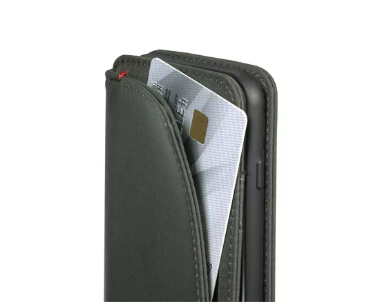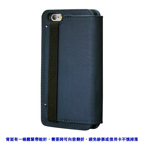 ● 保護套背面內建ㄧ條鬆緊帶,需要時可往前翻折可避免鈔票或信用卡不慎掉落。