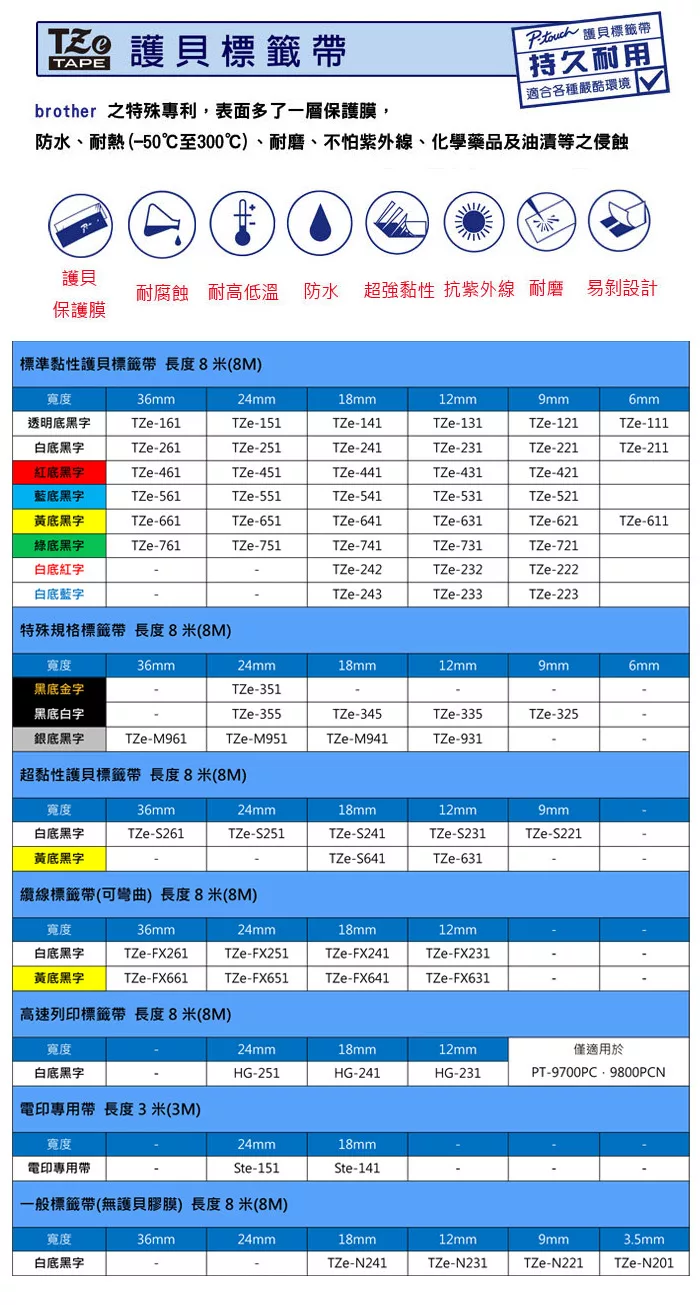 Brother 超強黏性護貝標籤帶 TZe-S251 (24mm 白底黑字) 原廠公司貨