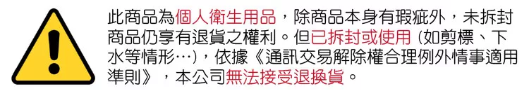 6.涉及個人衛生,並經消費者拆封之商品,如:內衣褲、刮鬍刀…等。