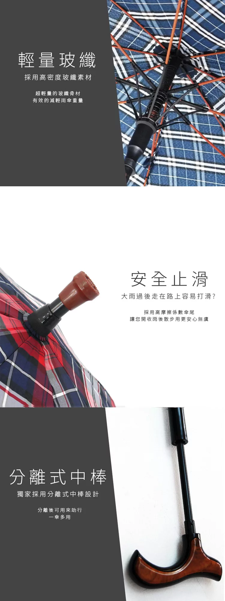 ◆ 雙中棒可分離設計:外管、內管中棒傘骨可分離,依需求分開使用,休閒助步好幫手。