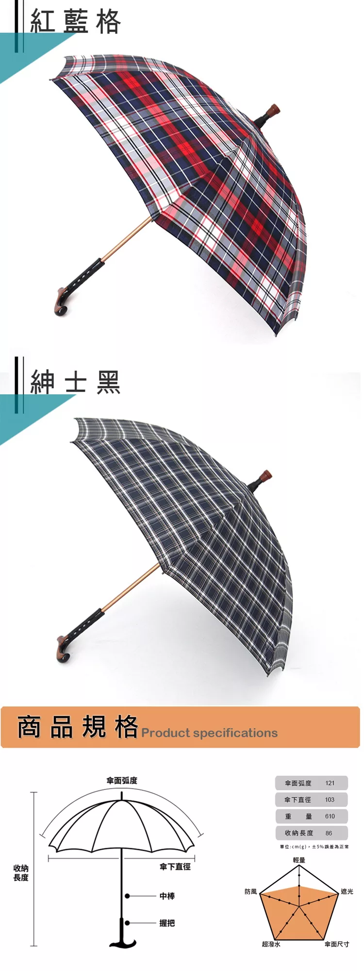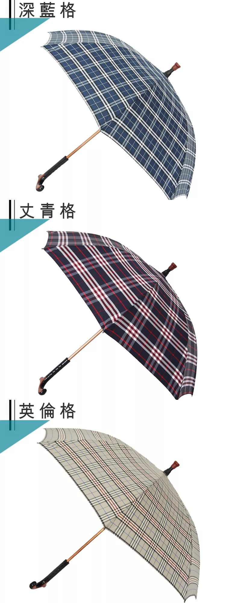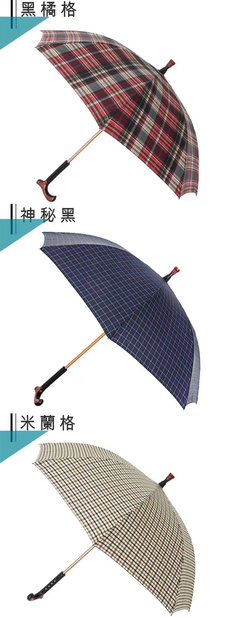 ◆ 採用先染色後編織的央帶格紋傘布,傘布永不退色。
