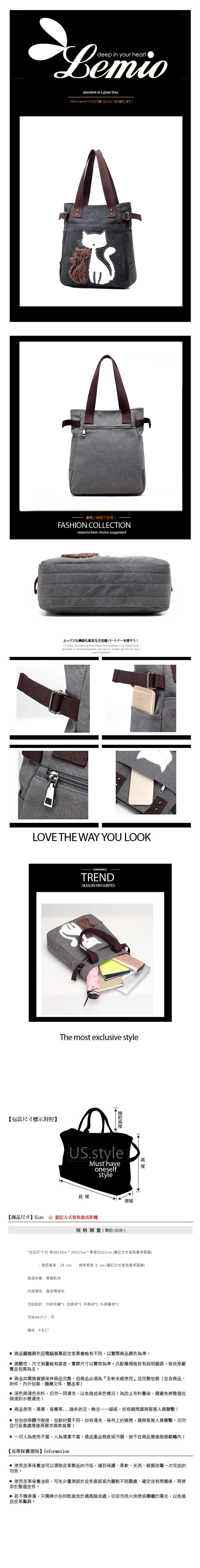 【Lemio】韓版帆布貓咪托特包(魅力黑)