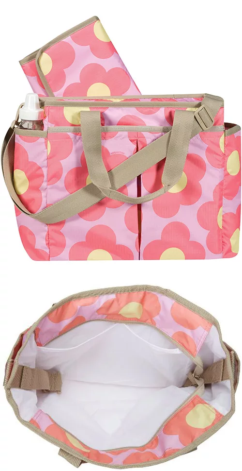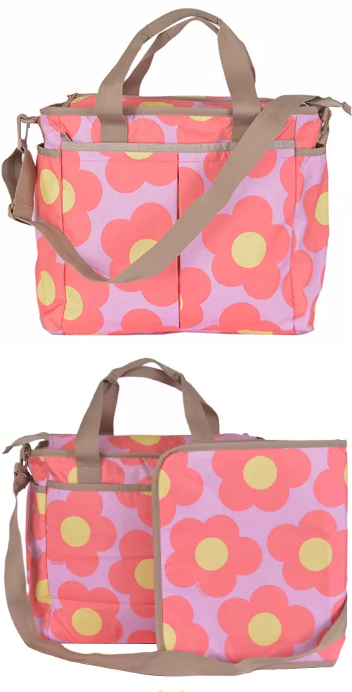 【EZlife】時尚輕便多功能大容量媽咪包 幾何粉