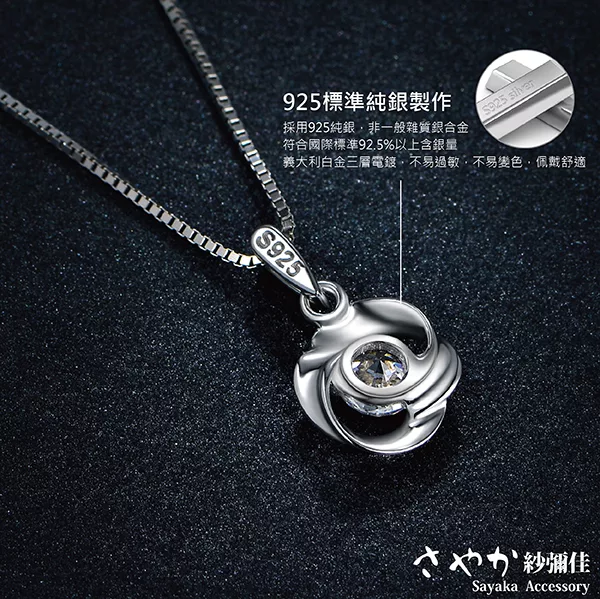 【Sayaka紗彌佳】925純銀月光下的約定兔子月亮造型鑲鑽項鍊 -單一款式