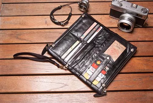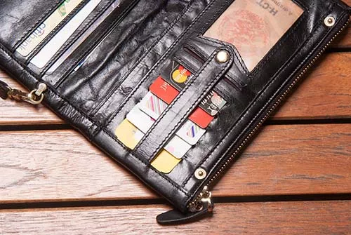 CHENSON三明治夾層 8卡4鈔大容量手機包長夾(CG15199-3) 黑