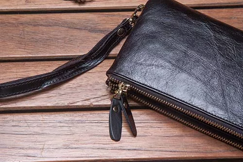 CHENSON真皮 6卡長夾式雙層手拿包 手機包附真皮手腕帶 可可棕(W25480-D)