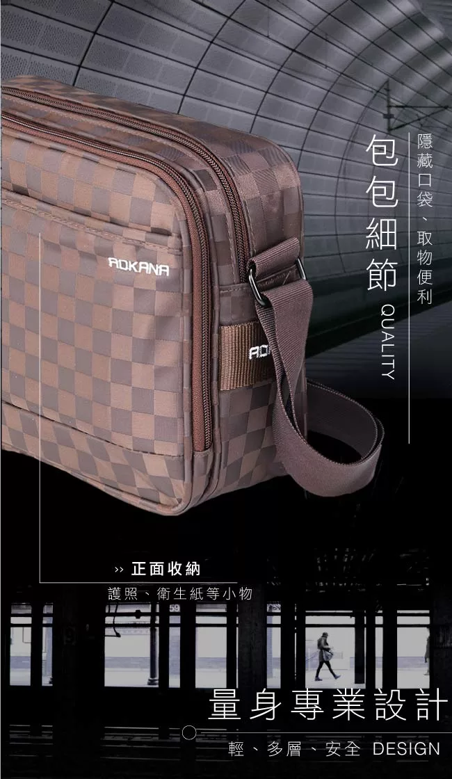 【EZlife】尼龍布多隔層百搭斜跨單肩包 卡其色