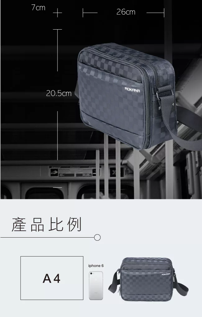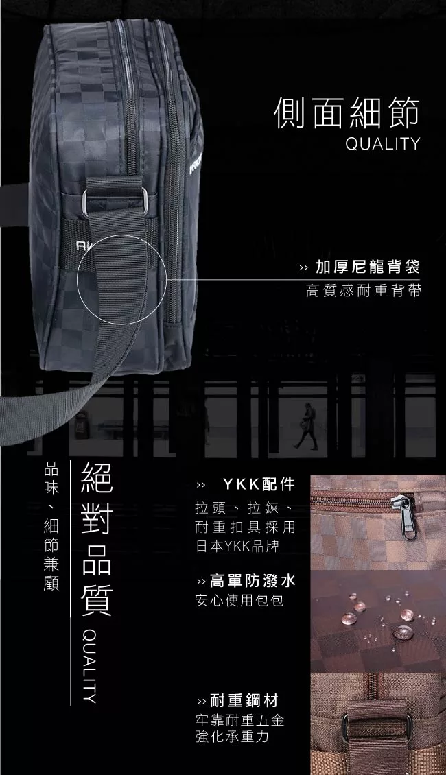 【EZlife】尼龍布多隔層百搭斜跨單肩包 黑色