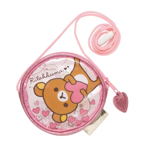 San-X 拉拉熊紅粉愛心系列透明防水長掛繩零錢包