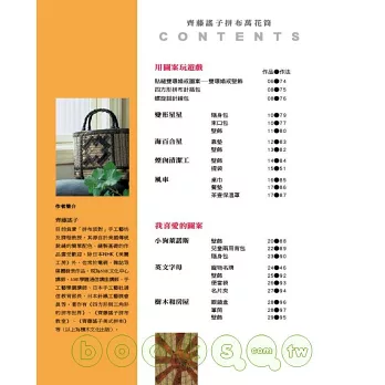 《齊藤謠子拼布萬花筒》這本書提供了拼布更多的趣味性以及獨創性,不妨拿起手中的布料,一起貼近生活與四季。