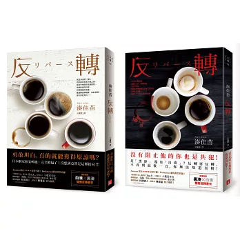 書衣採用進口凝雪映畫紙雙面精印,本書最大的趣味即在於湊佳苗「黑湊」、「白湊」兩種不同風格隨著劇情進展一再「反轉」,所以書衣設計也從這個概念出發,一面展現「黑湊」風格,以黑色為底;一面凸顯「白湊」風格,以白色為底。「白湊」書衣上放著四杯斟滿的咖啡,少掉的那一杯被誰拿走了呢?「黑湊」書衣上的咖啡,有兩杯被誰喝掉了?原本的咖啡杯印變成了觸目心驚的血漬,又究竟發生了什麼事?再仔細往下看,可以兩面反摺的書腰也是一面黑、一面白,連內封的封面封底以及前後扉頁也全部都是一黑一白,可以說是把「反轉」的概念發揮到了極致!也難怪日本出版社的編輯和版權人員在看到書封設計後都不禁讚嘆:「真是太漂亮了!我們在日本是沒辦法這樣做的。」而為了配合這次書衣的特殊設計,首刷上市時也將採取一半「黑湊」、一半「白湊」的方式出貨,至於劇情究竟是「黑湊」還是「白湊」?就請所有讀者一起來找出真相!