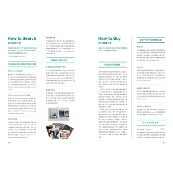 此外,本書也將帶你親臨字型設計的相關藝術設計現場,包括英國黑潭的大型裝置藝術「Comedy Carpet」、東京代官山蔦屋書店內的壁面作品「more than words」、NIKE JMC展場的標示設計、各種運用字型元素的商品設計等。帶你看見世界各地五花八門的字型樣貌。